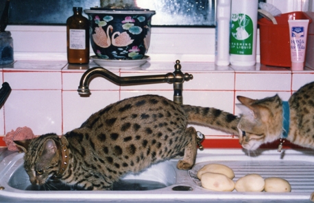 Bengals adore water, but F1s and F2s love it more than SBTs. Ours