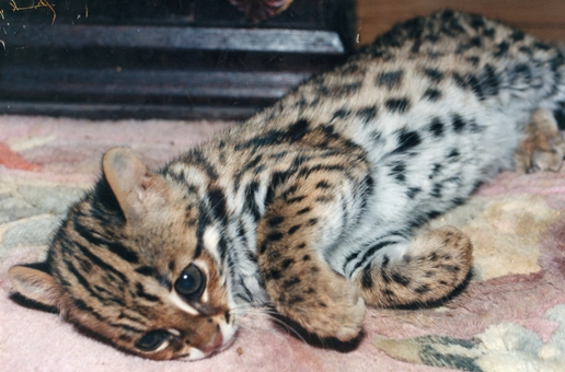 Esmond Gay & Leopardette (F1 Female) Suckling Her Paw - Circa August 1995