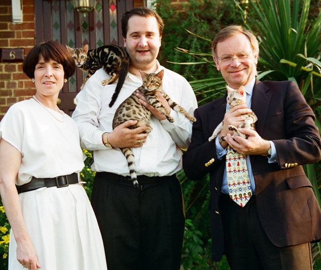 Sometimes when fellow cat addicts first meet, the bond is instantaneous. Lord Nourse is the highest judge in Britain, yet his wife is one of the most approachable ladies I have ever met. On the day they came to our house in 1995, Lady Lavinia Nourse and I chatted about cats for hours, and having been thoroughly covered in Bengals throughout, she eventually chose a brown spotted SBT kitten who she named Tippoo (Sarez Lord Fonterloroy).